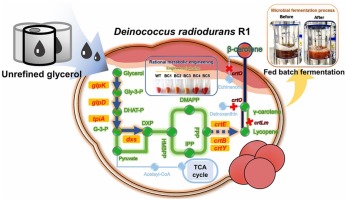 • Microbial upcycling of unrefined glycerol to beta-carotene by tailored metabolic engineering of extremophilic microorganism Deinococcus radiodurans R1